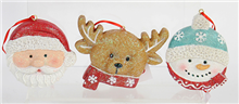 Snowman, Santa, Reindeer Cookie Ornaments 3 asst/set3.5"W