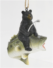 Fishing Bear with Fish Ornament 4"H - NEW ITEM DUE IN 8/10/26